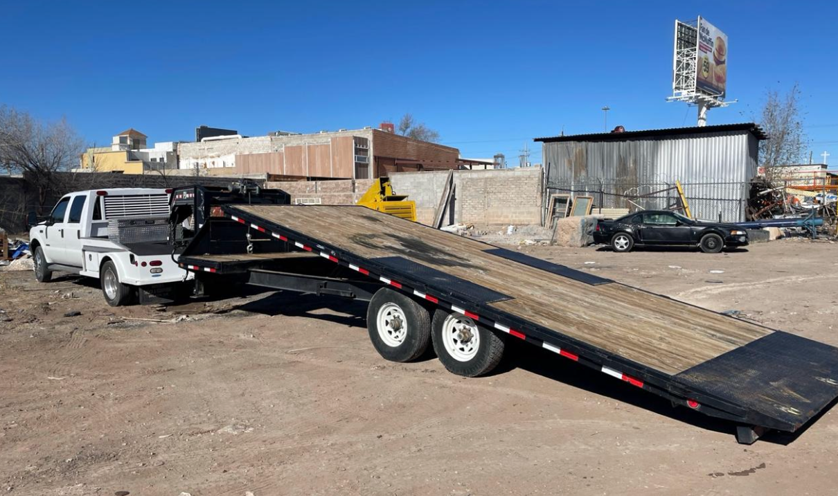Marca de Camion: Ford, Modelo: F-450 Año de Camion: 2004 Motor: Powerstroke 6.0 Combustible: Diesel Transmisión: Automatica Capacidad de Arrastre: 44,000 libras Marca de Plataforma: PJ Trailers Año de Plataforma: 2017 Capacidad de Plataforma: 7.5 toneladas o 15,000 libras Largo de Plataforma: 34 pies, Ancho de plataforma: 8 pies Incluye winch y llantas nuevas Equipo importado. Cuenta con factura y pedimento. El precio es mas IVA.