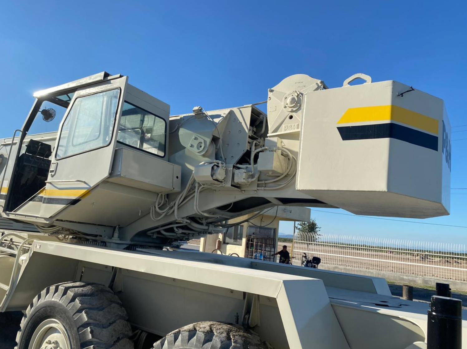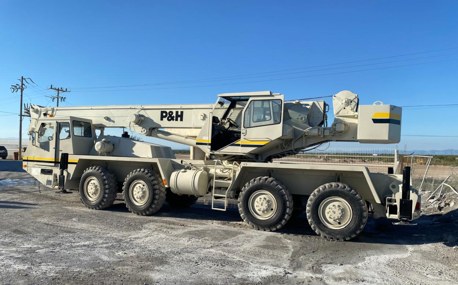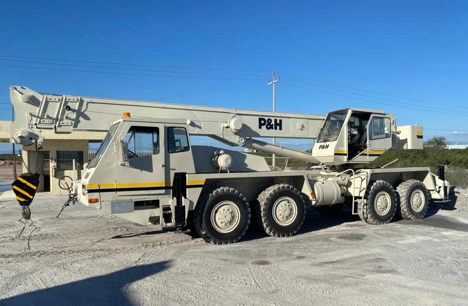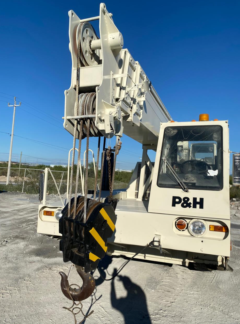 Grúa P&H de 25 toneladas. Marca del camión: P&H. Modelo HSHMC-25 Año 1989. Motor CAT-3208 8 Cilindros Diesel. Alcance de pluma: 80 pies con tres secciones. Millas: 5177. Equipo Importado. Incluye Pedimento.