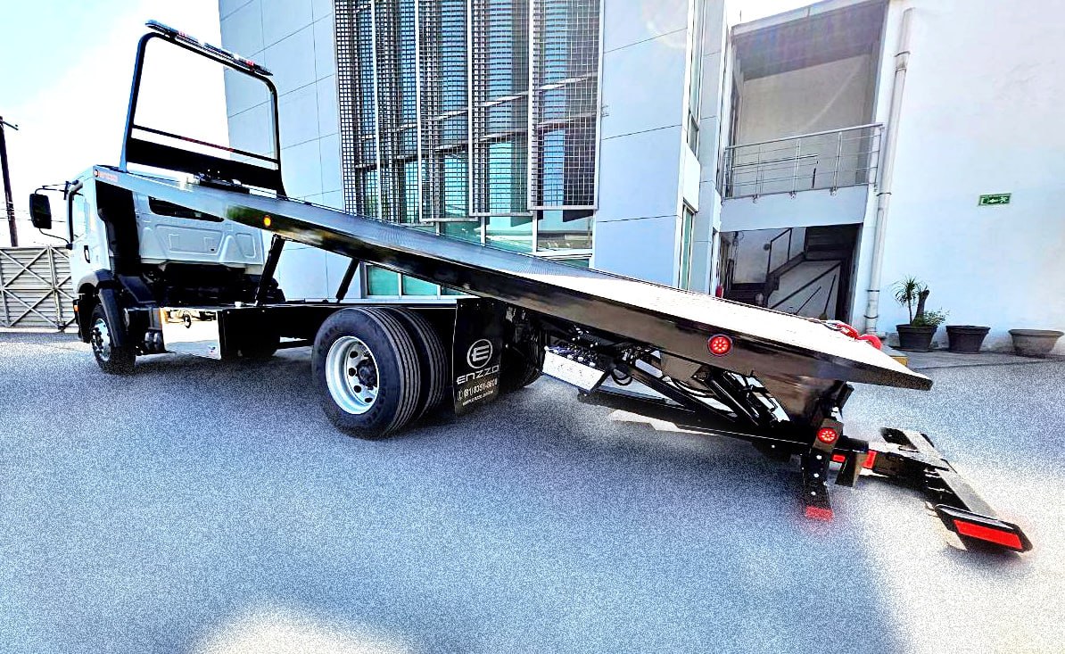 Plataforma de acero antiderrapante en 22, 24, 26 y 20 pies de largo y 96" y 102" de ancho. Capacidad de 10 Toneladas, Winch hidraulico de 25,000 lbs de capacidad. Tecnologia LED en plafoneria de la plataforma. Estabilizador Hidráulico o Wheel lift.