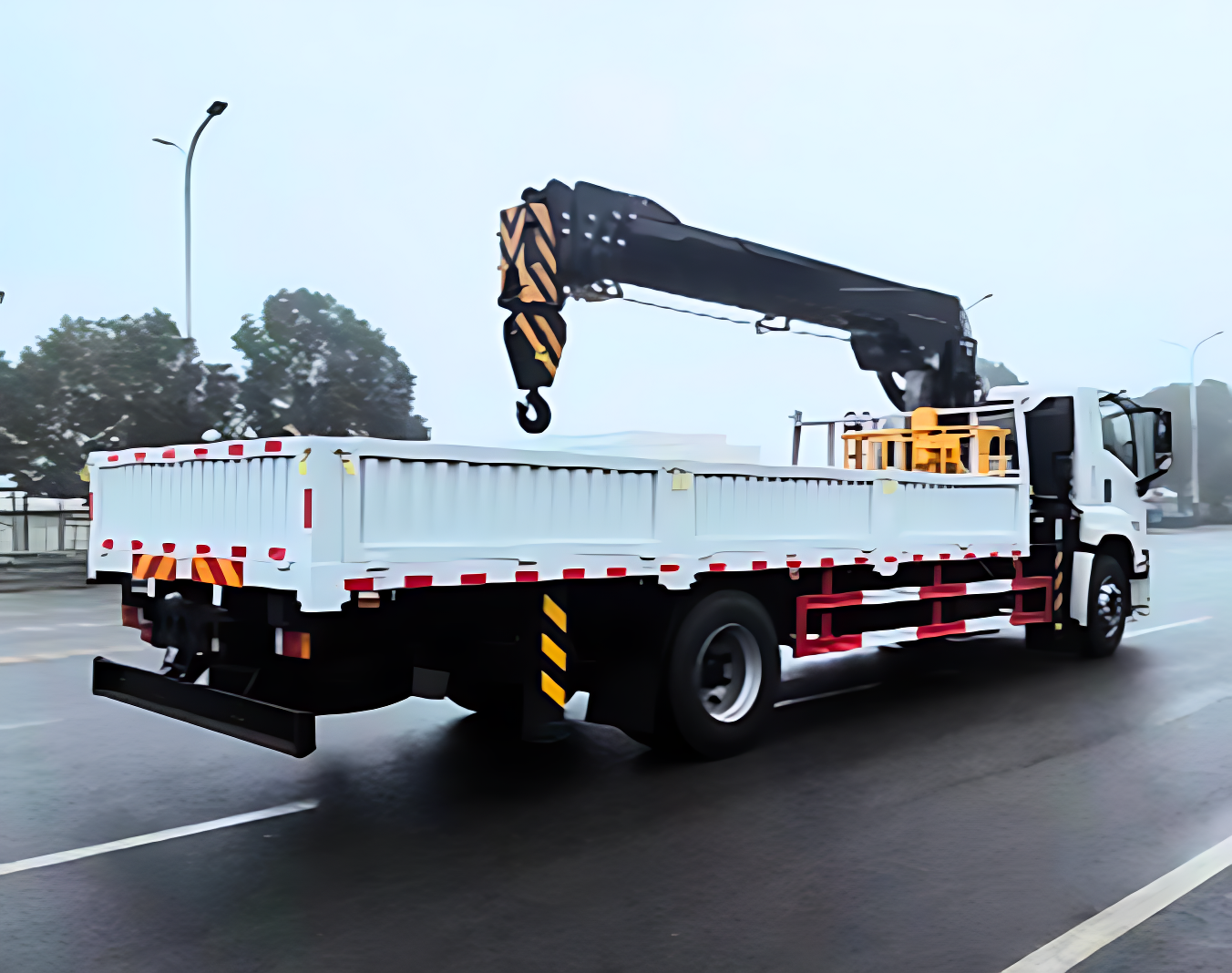 ISUZU de Diesel, 4X2/2 ejes , cabina FTR VC61 (nuevo), dirección asistida, aire acondicionado, sistema de audio, parachoques de metal alto Motor: Marca ISUZU Diesel modelo 4HK1-TC60 , de 6 tiempos, Inyección directa , 4 cilindros en línea con refrigeración por agua, turboalimentación e intercooler Potencia (HP): 205 HP Capacidad de carga: 8 tons Marca: XCMG modelo SQS200KII (acero) Radio de trabajo máximo: 13.5 m