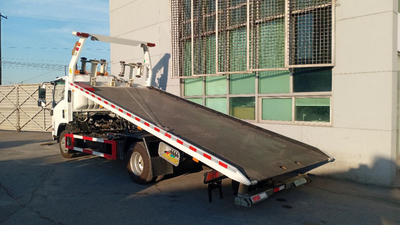 Camion: Isuzu, Año: 2025, Modelo de Camion: KV100 4x2, Motor: 4KH1CN6LB de Diesel, 4 cilindros, Transmisión: Manual, 5 vel + 1 rev, Frenos: Aire, Capacidad del Equipo: 4 Toneladas, Largo de Plataforma: 19 Pies, Capacidad del Underlift: 2.5 Toneladas.