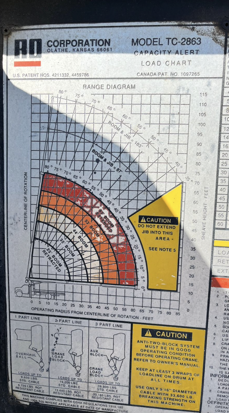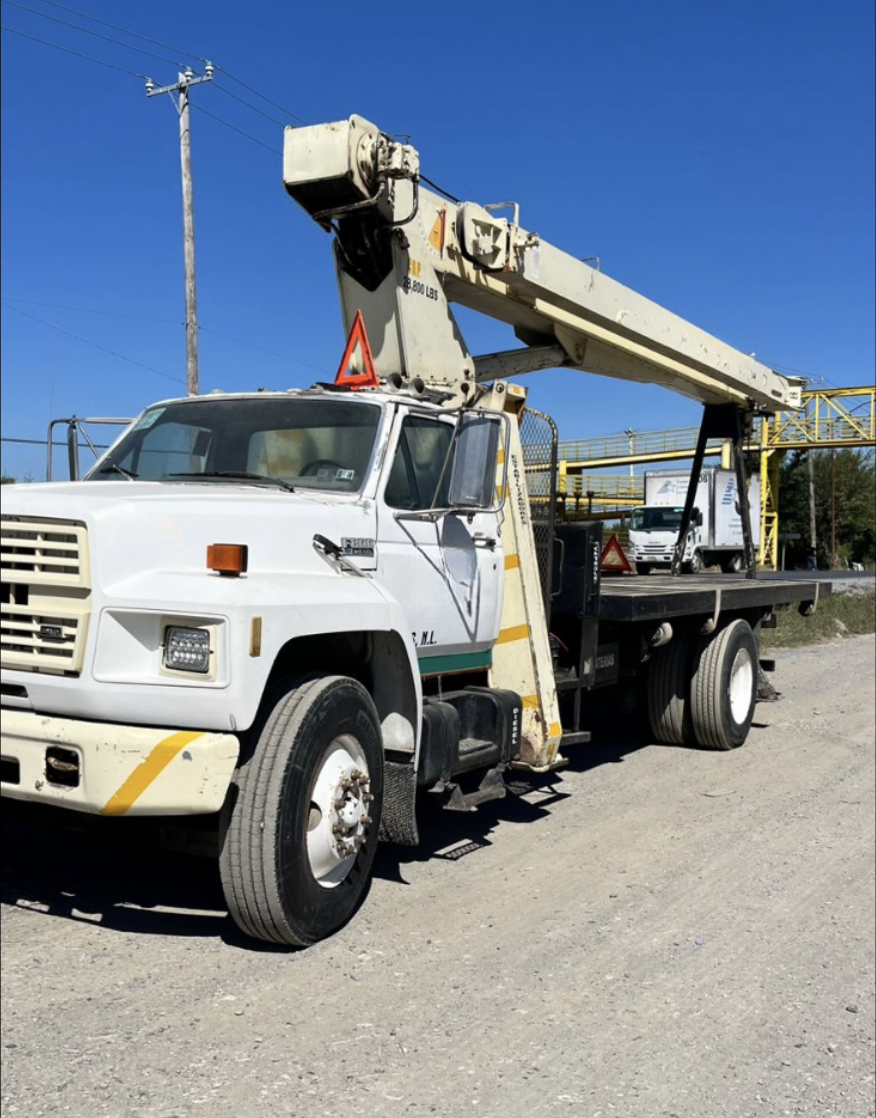 Marca del camión: Ford Año del camión: 1988. Motor: Ford diésel Transmisión: Manual Marca del Equipo: Ro Stinger TC-2863 Capacidad del equipo: 14 toneladas. Alcance de la Pluma: 19 Mts.