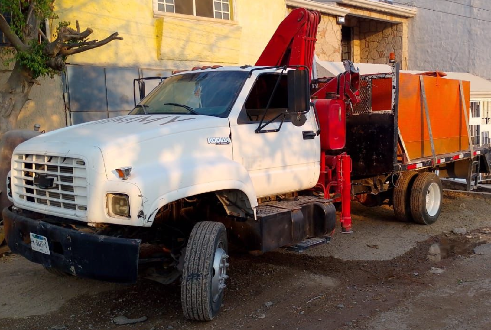 Marca del Camión: Chevrolet, Modelo: Kodiak, Año del Camion: 2004, Motor: Diésel 6 cilindros, Transmisión: Estándar, Marca del Equipo: FASSI, Capacidad del Equipo: 5 toneladas, Alcance de Pluma: 10 metros, Extensiones: 3, Capacidad de Plataforma: 10 toneladas, Largo de Plataforma: 3.70 metros, Ancho de Plataforma: 2.60 metros