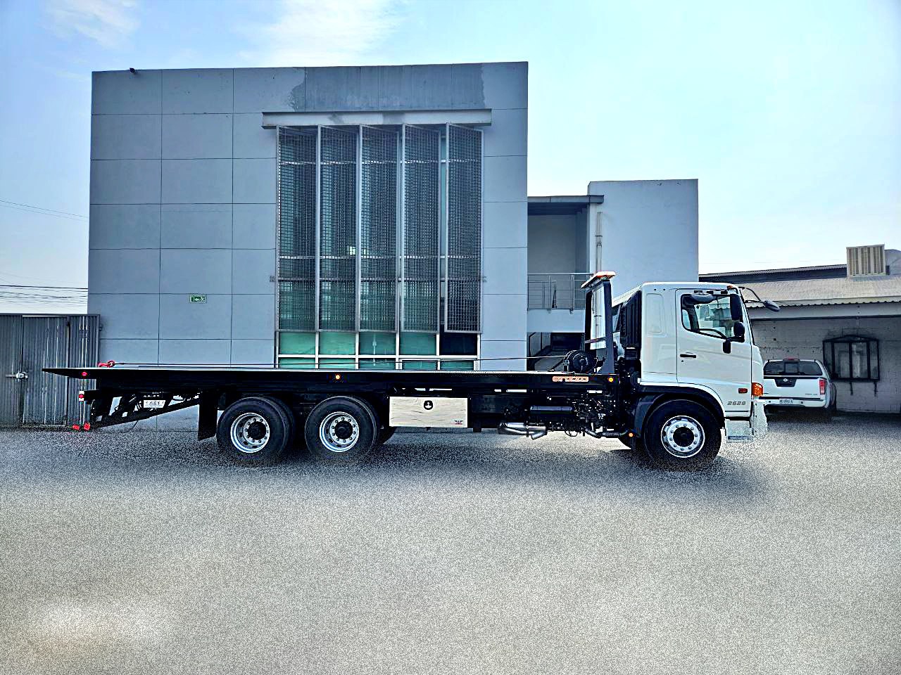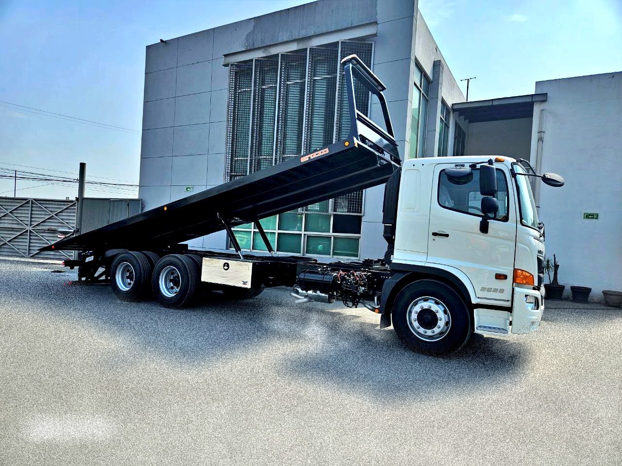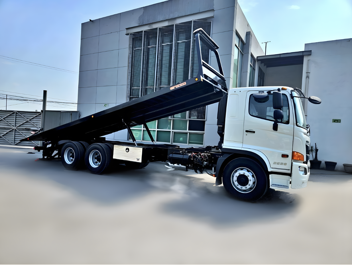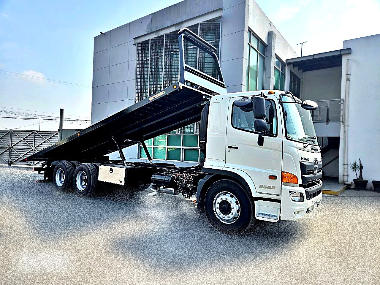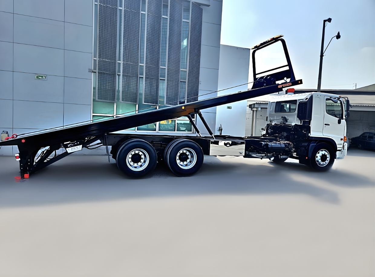 Plataforma de acero antiderrapante 22, 24, 26, 28 y 30 de largo y 96" y 102" de ancho. 15 toneladas de capacidad. Winch hidraulico de 25,000 lbs de capacidad. Tecnologia LED en plafoneria de la plataforma. Estabilizador Hidráulico o Wheel Lift.