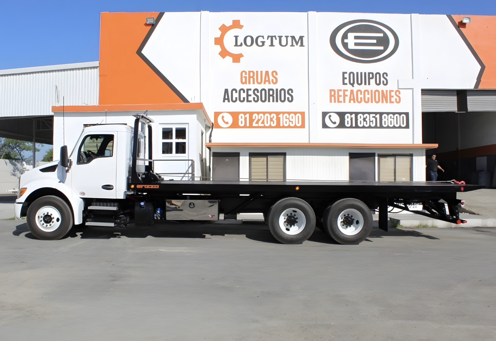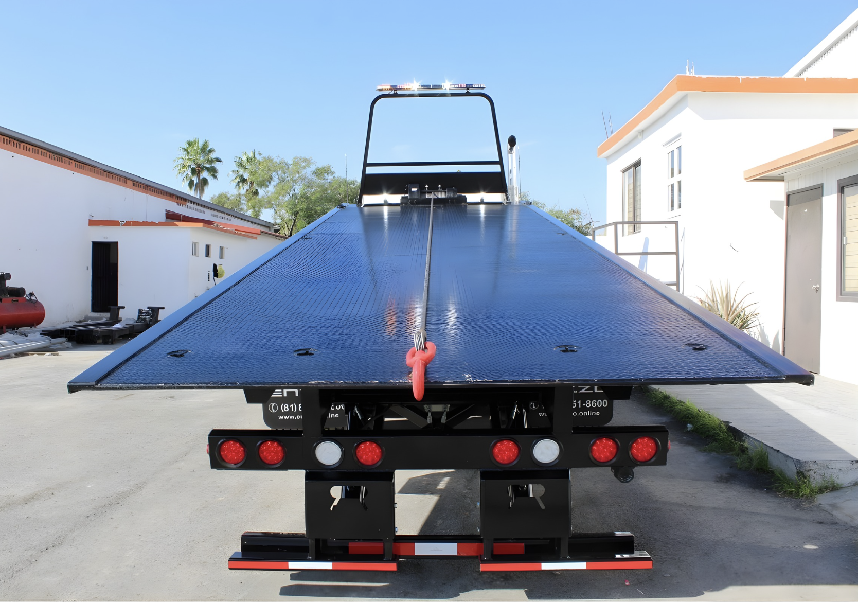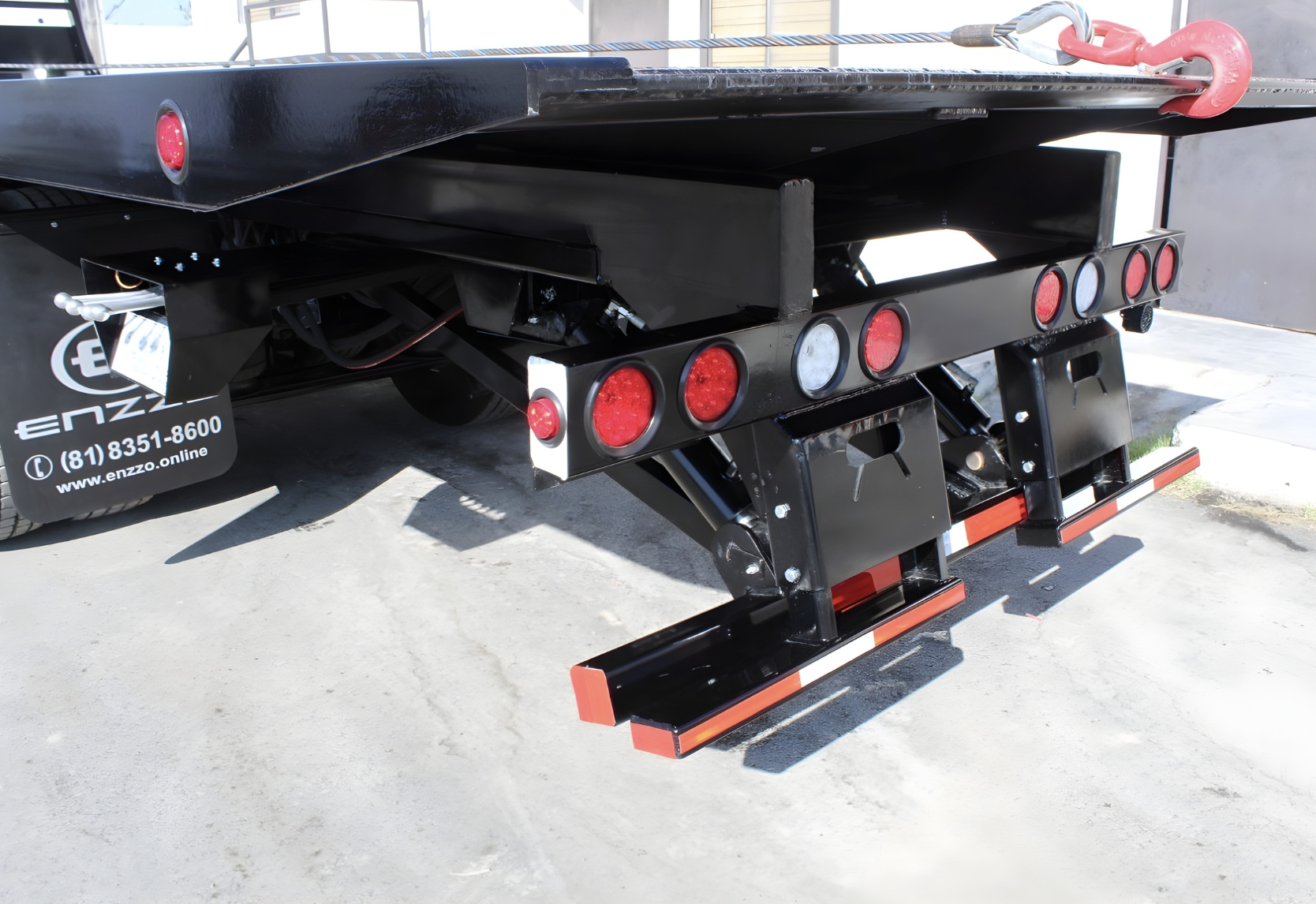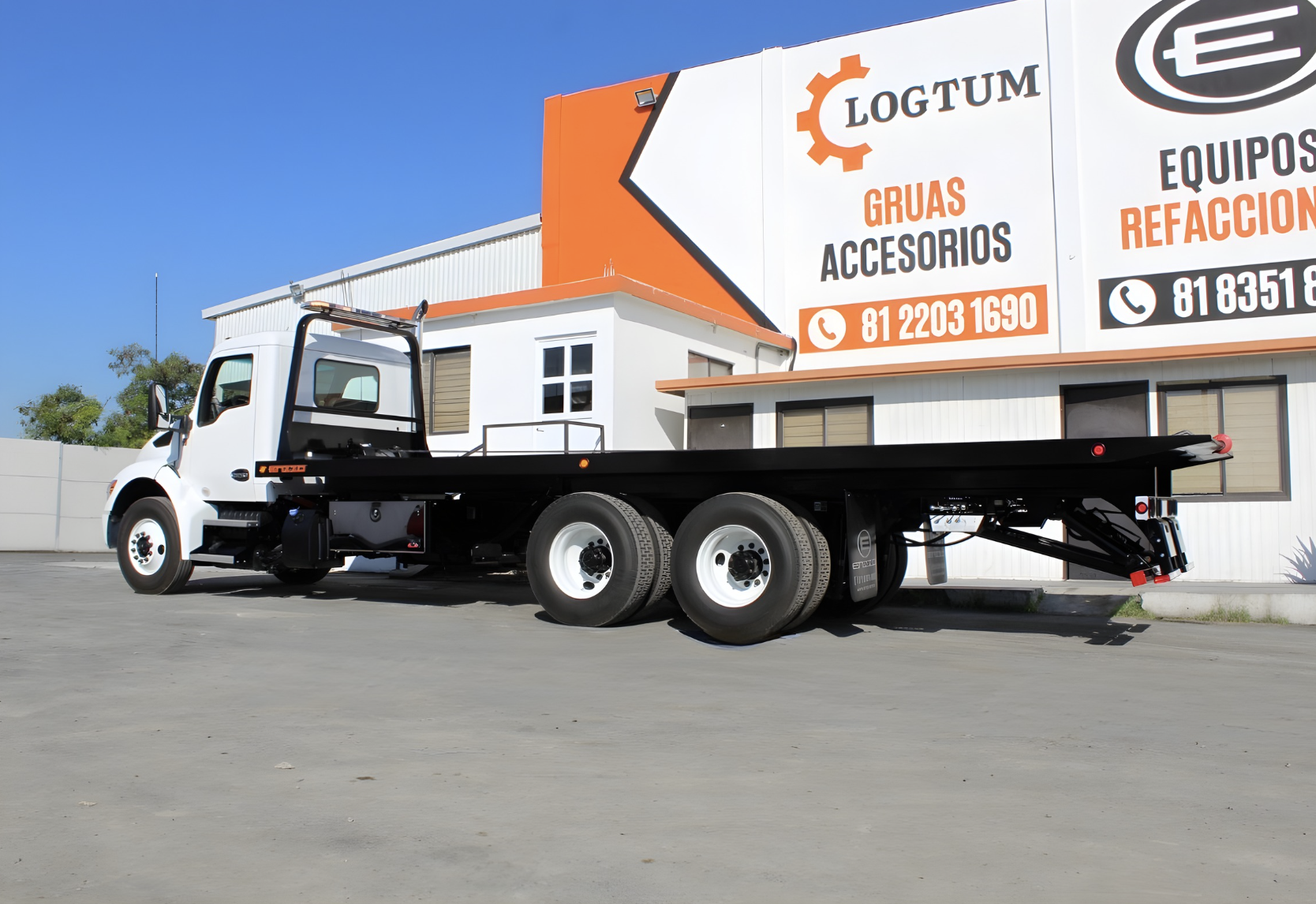Plataforma de acero antiderrapante disponible en 22, 24, 26, 28 y 30 de largo y 96" y 102" de ancho ◉ Capacidad: 15 toneladas ◉ Capacidad de Winch Hidraulico: 25,000 lbs ◉ Tecnologia LED en plafoneria de la plataforma ◉ Equipo disponible con estabilizador Hidráulico o Wheel Lift ◉ Incluye Carta-Certificado de cumplimiento NOM -053-SCT