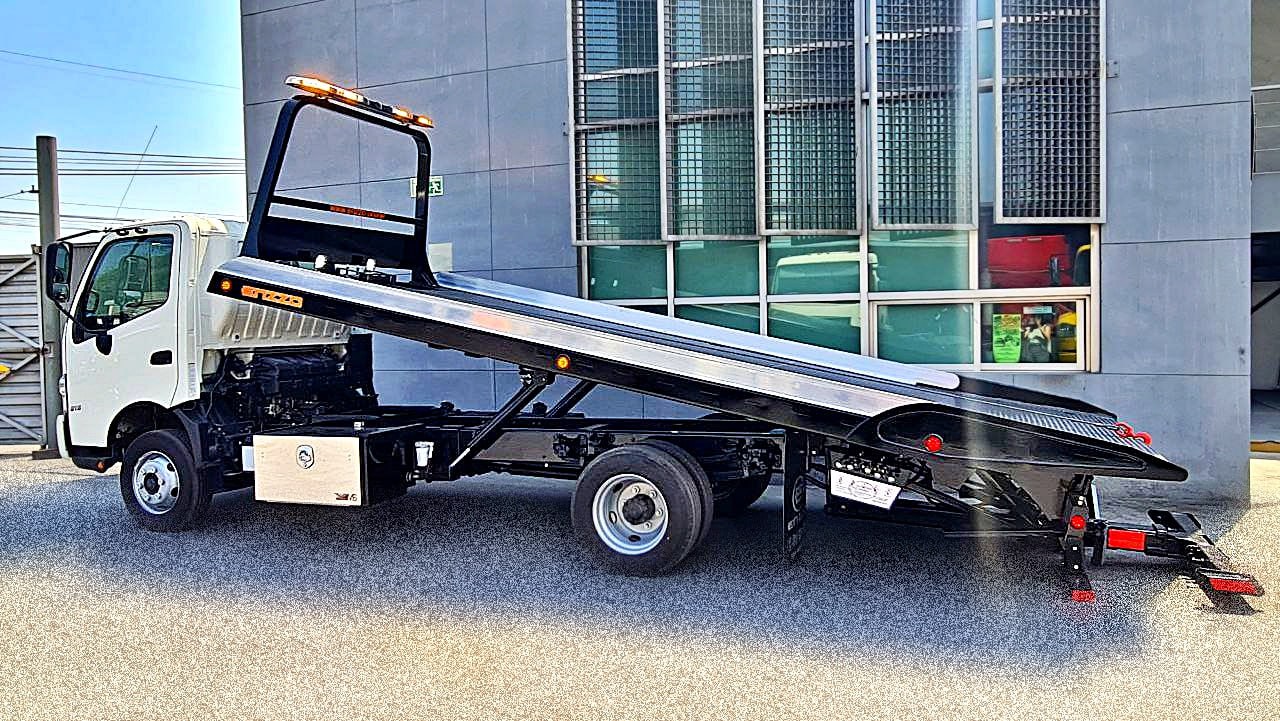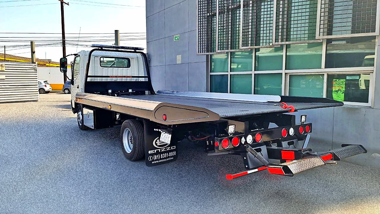 Plataforma de Acero con antiderrapante de 6 Ton de capacidad de alta resistencia, 19, 20 y 21 pies de largo y 96'' de ancho externo. Winch Hidráulico de 8,000 lbs de capacidad con sistema de desembrague remoto y faros de trabajo en area de winch. Tecnología LED en plafoneria de plataforma.