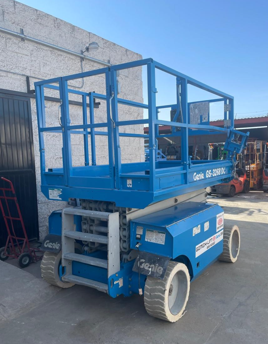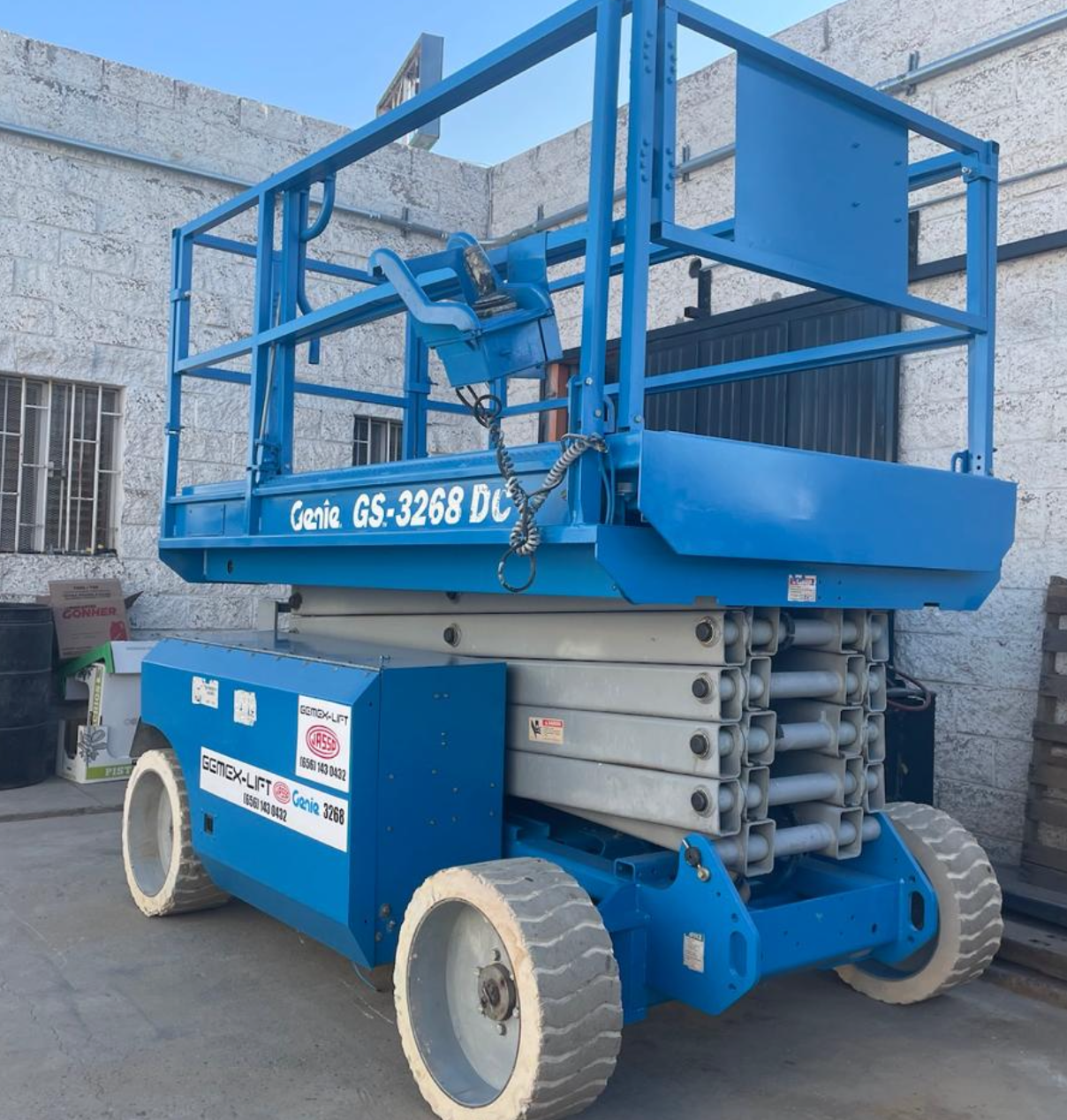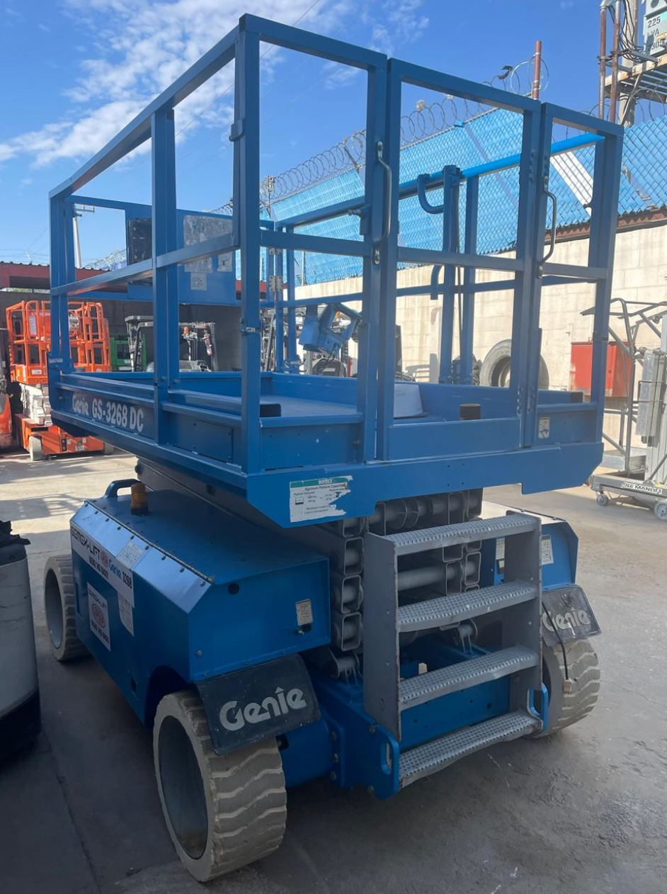 Marca del Equipo: Genie Año del Equipo: 2000 Tipo: Eléctrico Altura de trabajo: 11,75 metros (38 pies) Capacidad de carga: 454 kg (1,000 libras) Neumáticos: Sólidos y no marcantes de 22 x 55 cm (9 x 21,5 pulgadas)